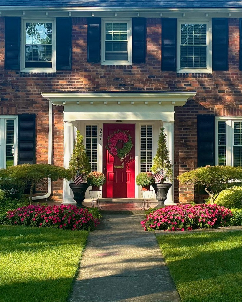 Nothing wakes up a homes curb appeal more than a perfect shade of red on the front door. Not everyone gets it right. And I would rather see any other shade on the front of a house than a red that is lackluster -of which there are plenty – or when the red clashes with the rest of the home – which is actually difficult to do.